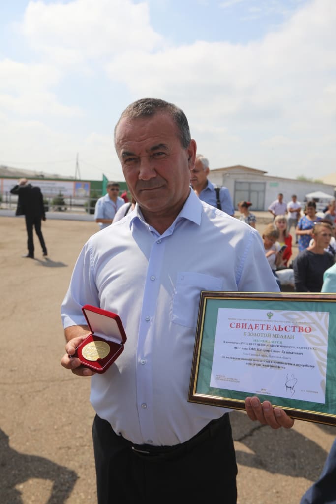 На открытии конкурса состоялась церемония награждения фермера из села Игжей Усть-Удинского района Салома Кахарова. Он удостоился золотой медали Министерства сельского хозяйства РФ в номинации «Лучшая семейная животноводческая ферма». В 2013 году Салом Кахаров получил грант на развитие семейного животноводства. В КФХ построили новый коровник, реконструировали здание фермы, приобрели новую технику для работы. Сегодня здесь содержится 1500 коров, 700 овец. В хозяйстве – 4 тыс. гектаров собственной кормовой базы. Получая награду, фермер признался, что не ожидал такого признания, и теперь у него появился еще больший стимул для повышения производительности труда.