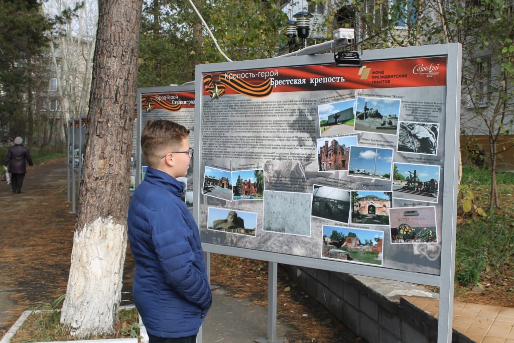 В рамках проекта саянского благотворительного фонда «Память сильнее времени» установлены стенды с информацией о городах-героях, городах воинской славы в сквере Ветеранов, проведен свободный показ в ДК «Юность» художественных фильмов о войне, поставлен спектакль «А зори здесь тихие», в котором были заняты самодеятельные актеры-саянцы.