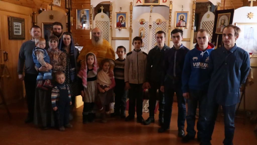 В семье Семяковых все привыкли подниматься чуть свет. Вот и сегодня – сначала утренняя молитва, потом скорый завтрак и за работу. А ее в деревне хватает. Прополоть грядки, подоить коз и коров, выгнать животных на пастбище, покормить кур, нагреть воды, чтобы простирнуть вещи… На все – пара часов. К обеду Семяковы собираются выехать в лес, чтобы отметить на природе день рождения младшей Танюшки. В предвкушении праздника стараются справиться с делом проворнее. Впрочем, и в обычные дни отцу никого заставлять не приходится. Каждый в этой семье знает свои обязанности, а еще старается помогать друг другу. Работа спорится, ведь 22 пары рук – это же колхозная бригада!