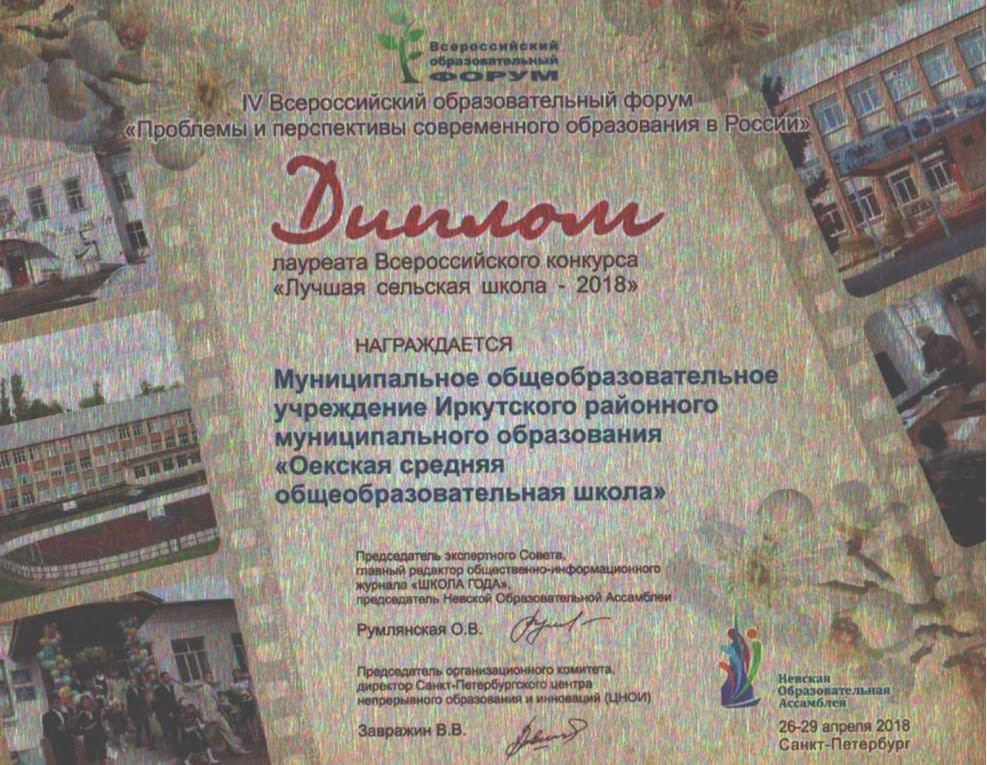Оёкская школа стала победителем регионального конкурса «Лучшая образовательная организация» в номинации «Агробизнес-образование». Об этом стало известно 24 апреля на подведении итогов региональных конкурсов профессионального мастерства среди работников сферы образования. В качестве награды школа получила диплом победителя в номинации и сертификат на сумму 900 тысяч рублей. Об этом 30 апреля 2019 года сообщили в пресс-службе администрации Иркутского района.