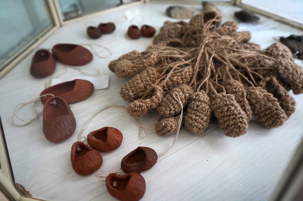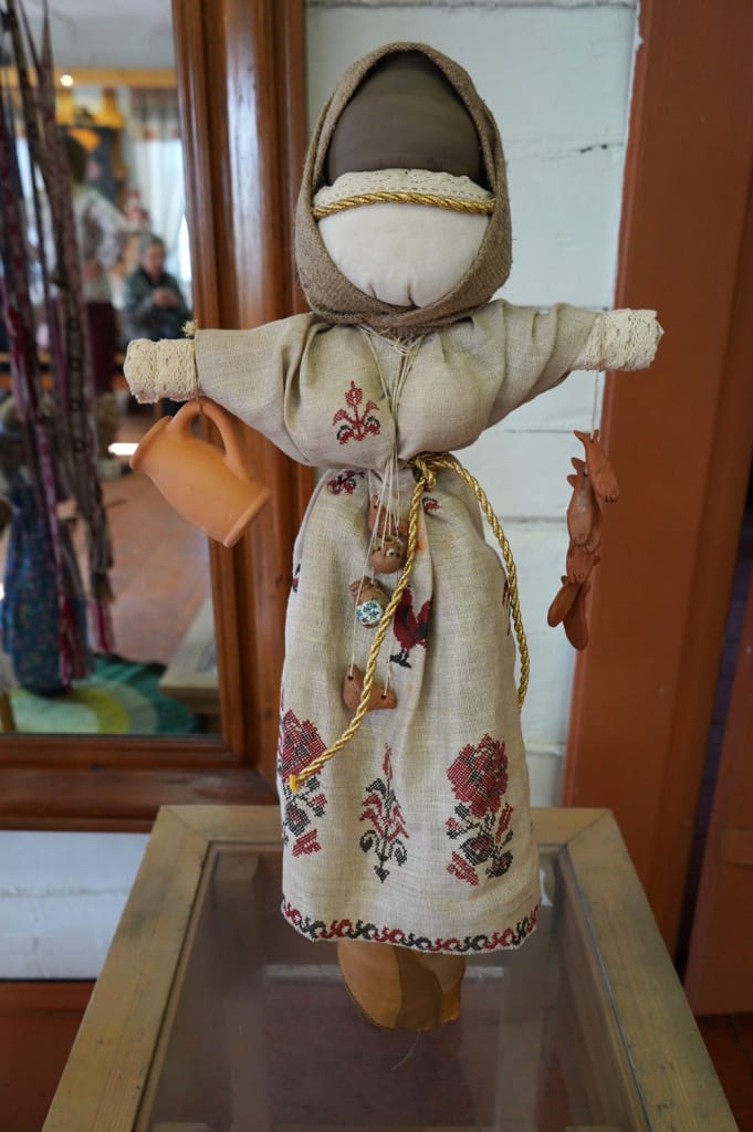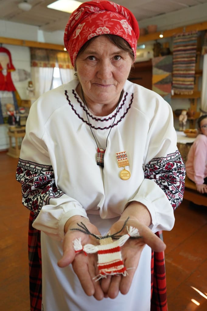 Всего на выставке представлено более 50 работ в технике ткачества, художественной вышивки, вязания, а также глиняные игрушки и тряпичные куклы.