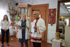 – Конечно, в нем можно вскипятить 3,5 литра воды. Внутри самовара – латунный цилиндр, вокруг него – воздушное пространство. Чтобы изготовить деревянную болванку для такого самовара, нужно очень хорошо знать черчение. Сначала рисуется красивая линия сосуда, потом рассчитывается его объем. На выставке также можно увидеть сервизы: винный и набор для кваса. Все мои изделия функциональные. Кстати, туес – это, по сути, термос, если, например, вы нальете в берестяную кружку холодную жидкость, то он сохранит эту температуру. Внутри береста обработана подсолнечным маслом, а снаружи – воском.