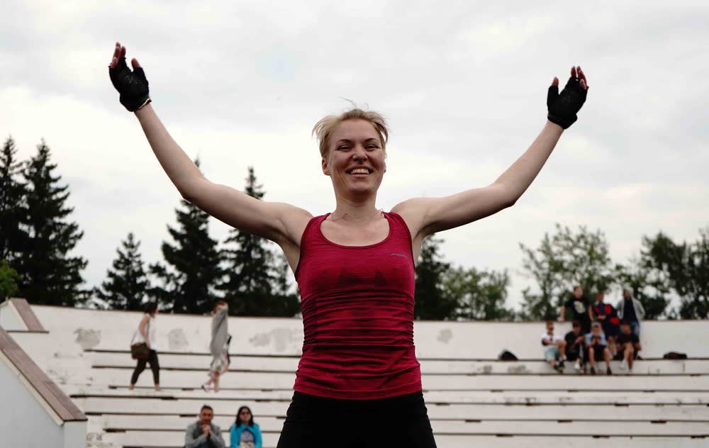 Когда основная часть тренировки завершилась, Алексей Негодайло предложил группе небольшое соревнование по удержанию «планки». Здесь отличилась Анна Линд, которая выдержала около пяти минут напряженного положения.