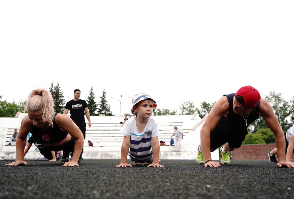 Разминочный бег, прыжки, отжимания, приседания, а также соревнования по удержанию «планки». Бесплатная тренировка CrossFit под руководством олимпийского чемпиона Алексея Негодайло прошла в Иркутске на острове Юность.