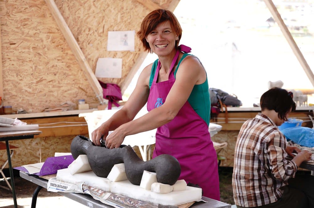 Елена Сластникова работает художником по костюмам в челябинском театре оперы и балета, а еще занимается скульптурой. Ее вдохновляет пластика человеческого тела, женские образы, балерины. В Хужире на тематику ее работ повлияли еще и очертания байкальской природы.