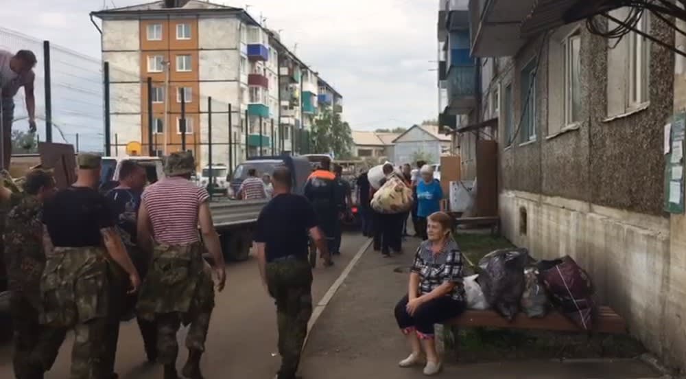 Спасатели помогают переехать жильцам аварийной пятиэтажки в Тулуне