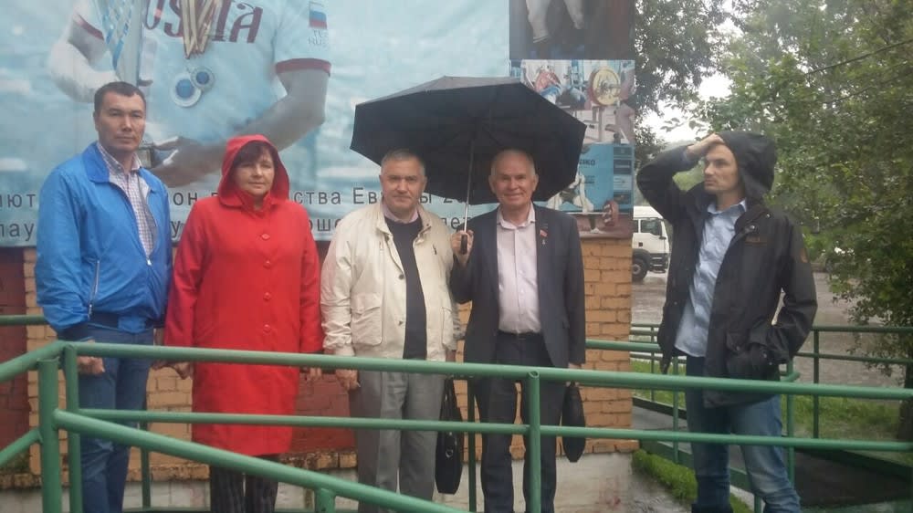 Анатолий Обухов, Светлана Шевченко, Андрей Маслов, Сергей Бренюк и Евгений Сарсенбаев приехали в тот день, когда в Нижнеудинске выпала месячная норма осадков, дождь шел целые сутки беспрерывно. В прибрежных частях города грунтовые воды поднялись и начали подтапливать недавно высушенные дома. Несмотря на непогоду, делегация отправилась по запланированному графику.