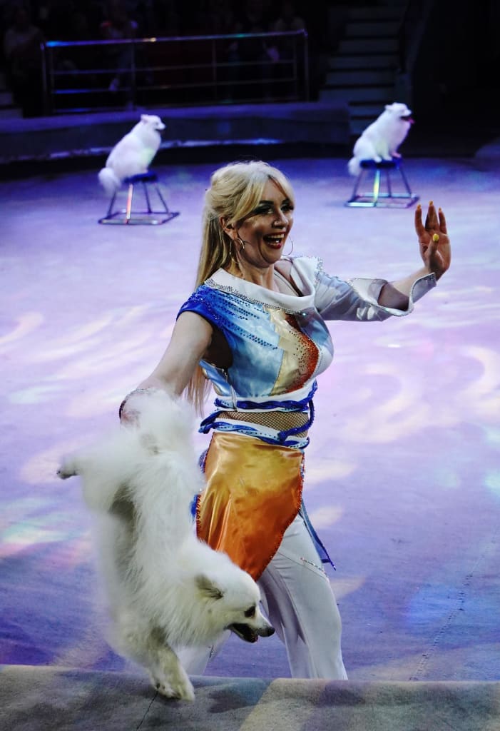 Не хуже клоунов настроение поднимали зрителям умилительные выходы «морских» обезьянок и озорных собачек. За дрессировку этих артистов отвечают Елена и Андрей Гончарук. Супруги признались, что в дрессуру перешли из трюкового отделения.