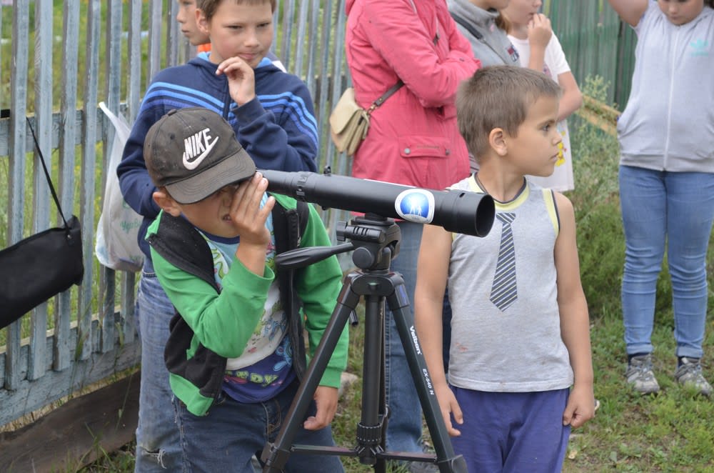 За эти без малого две недели в сельском Доме культуры состоялись научно-популярные лекции, а на площадке рядом с ним – наблюдения в телескопы Солнца, Луны, Юпитера и Сатурна, а также некоторых объектов глубокого космоса. Вместе с детьми из села Белоусово и деревни Шеметова астрономы-любители сделали несколько простеньких телескопов из линз от канцелярских луп и построили вокруг школы макет Солнечной системы, уменьшив все объекты и расстояния между ними в один миллиард четыреста миллионов раз.