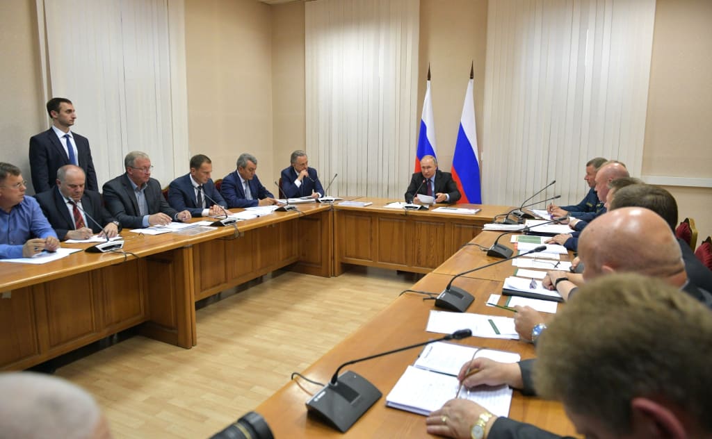 Вечером в помещении районной администрации Владимир Путин провел совещание по вопросам жилищного обеспечения граждан, пострадавших в ходе паводка.