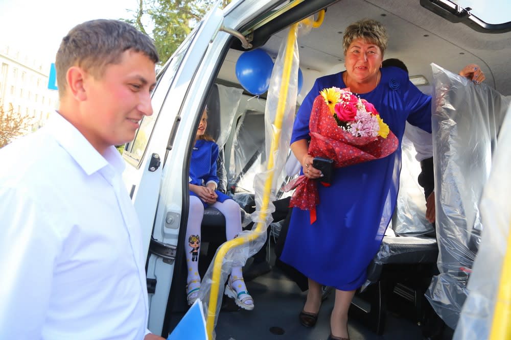 После дипломов победителям конкурса вручают ключи от микроавтобусов.