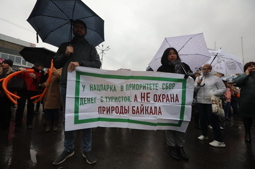 Заслуженный юрист РФ Юрий Курин напомнил всем участникам митинга, что трижды сибирякам удавалось отстоять Байкал: