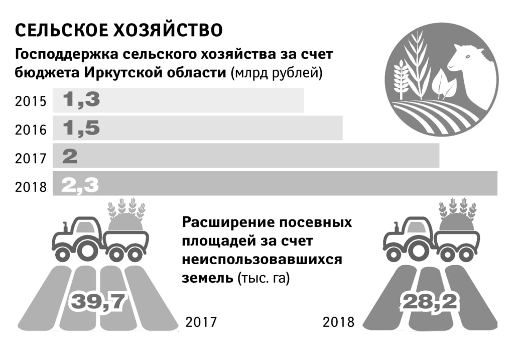 Наиболее динамично развивающимся сектором аграрной экономики Приангарья являются малые формы хозяйствования. В числе получателей субсидий – семейные животноводческие фермы, на грантовую поддержку развития которых ежегодно выделяется около 150 млн рублей. Четвертый год действует программа поддержки садоводческих и огороднических товариществ, деньги идут на развитие инженерной инфраструктуры садоводств.