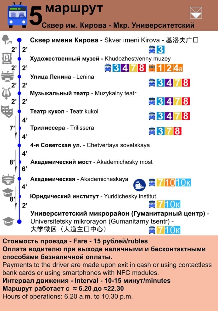 Скоро на остановках нового маршрута, который будет следовать под №5 от сквера им. Кирова до микрорайона Университетский, появятся такие карточки.