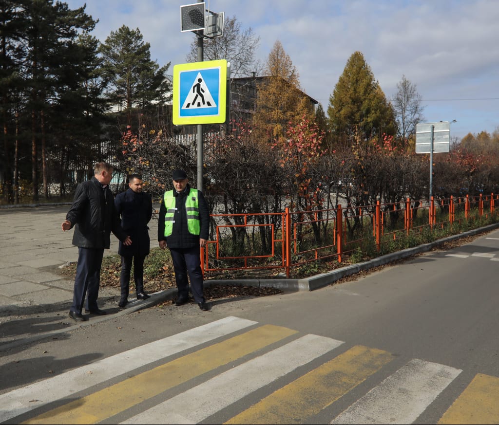 Перекресток улиц Карла Маркса и Урицкого – одно из самых оживленных мест в центре Иркутска. Чтобы повысить безопасность пересечения магистрали пешеходами, строители оборудовали светящуюся полосу на тротуаре, которая вспыхивает одновременно с зеленым сигналом светофора.