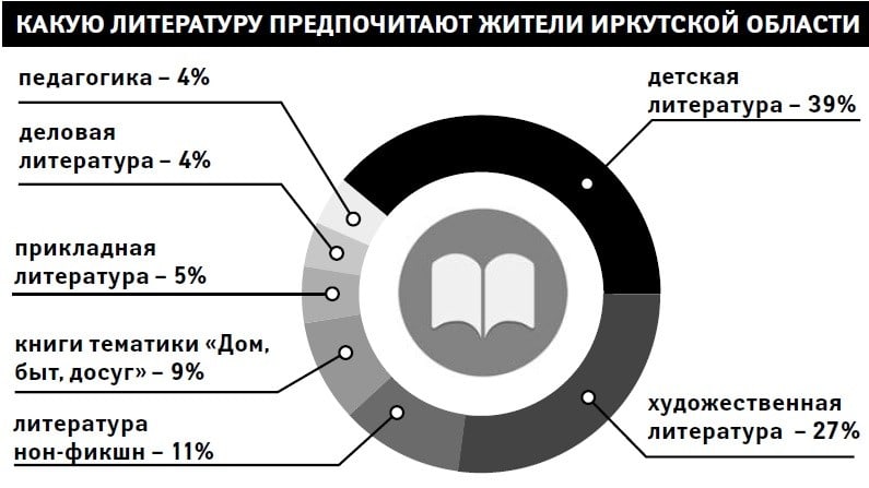 Показателем интереса к книге служит и посещение библиотек читателями. В Иркутской области на 2,3 млн населения приходится 754 библиотеки. Постоянно увеличивается субсидия из областного бюджета для приобретения книг в библиотеки. В 2019 году на эти цели предусмотрено 6,5 млн рублей.