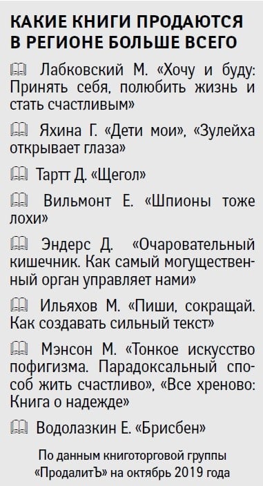 – Когда «Амазон» пришел в Англию, доля продажи печатной литературы там упала до американских масштабов, онлайн забрал оффлайн. Эта доля сейчас во всех крупных странах стабильна – доля продажи печатной литературы в Штатах и Англии через интернет составляет 50% и через книжную розницу 50%. Этот тренд будет и в России. У нас сейчас доля продажи печатной книги 70% на 30% (онлайн). Через год-два мы подойдем к мировому тренду 50/50. Исходя из этого, понятно, что доля продажи печатной литературы расти не будет. Есть макроэкономические условия, которые говорят о том, что расти мы не можем. Это невозможно еще и потому, что количество жителей региона падает по отношению к тому же 2018 году. На 30–40 тысяч населения стало меньше. И вопрос здесь не только в рождаемости, но и в миграции творческой, креативной молодежи. Читающей аудитории становится меньше.