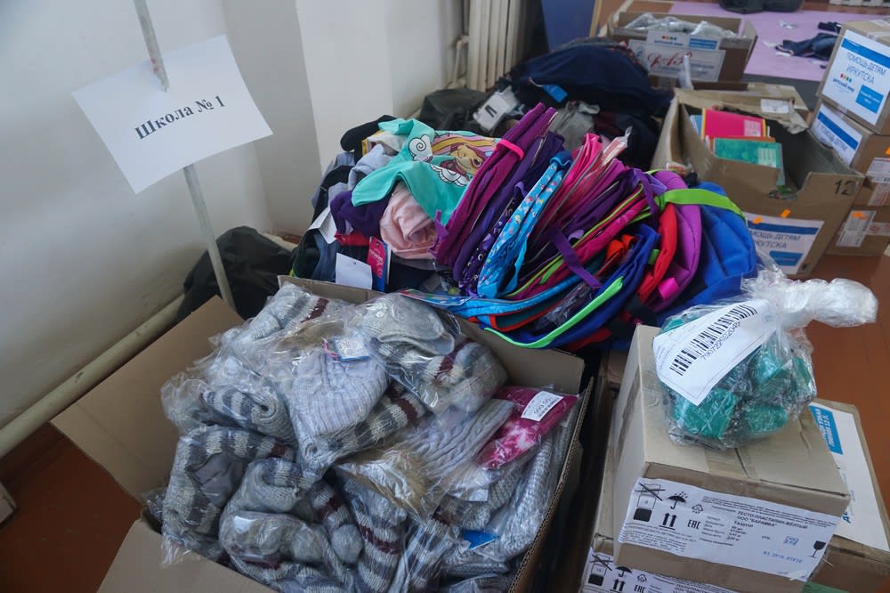 Местом выдачи гуманитарной помощи выбрали коррекционную школу Тулуна, где собранный Иркутским региональным отделением РДФ груз занял большую часть спортивного зала. Преподаватели и работники школы помогли общественникам разделить его по ассортименту, по территориям и школам, и уже через несколько дней приступили к выдаче.