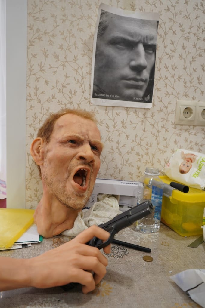 – Всех персонажей делаю из полимерной глины, ее свободно можно найти в продаже. Материал наношу на предварительно подготовленный макет из фольги. Отдельно ведется работа над челюстью с зубами, ушами, глазами. Много времени уходит на вживление волос. Далее формируем прическу, брови, бороду, усы. После термообработки приступаю к макияжу, например, придаю определенный оттенок коже, прорисовываю вены, родинки, ссадины, раны и т.д. Мне очень важно передать эмоции и характер, чтобы наши персонажи не отпугивали, а наоборот, вызывали интерес и восхищение.