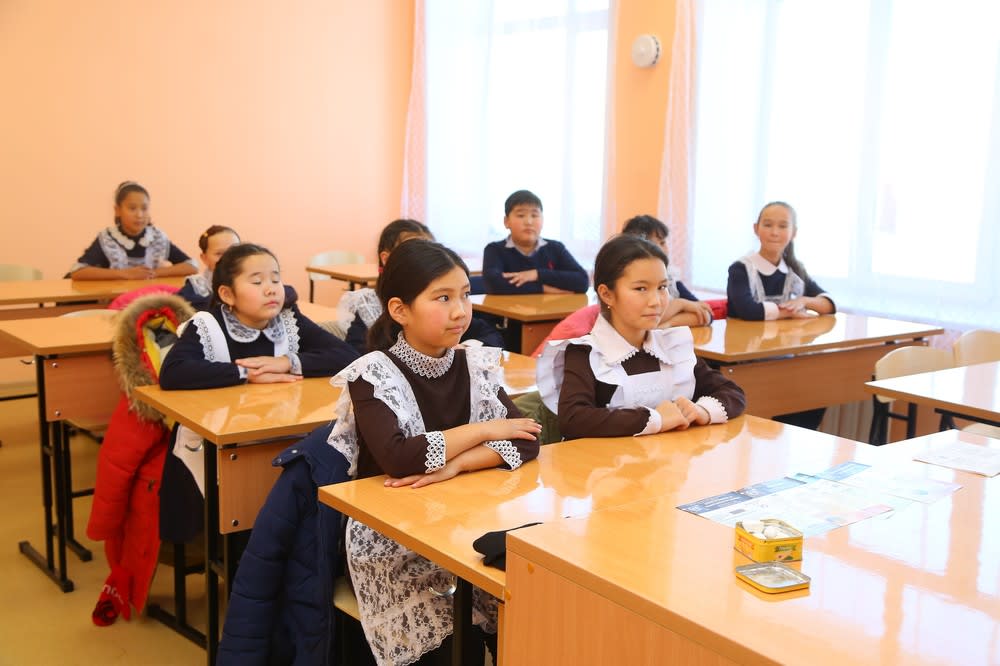 В школе учатся 187 детей, часть из которых ездят на школьном автобусе из деревни Хайга. Площади вполне позволяют увеличить число учащихся до 250 человек. Здесь с первого класса изучают бурятский язык, а после девятого сдают по нему обязательный госэкзамен. В школе создан школьный парламент, работают различные кружки и спортивные секции, а лучшие ученики получают именную стипендию Баира Цыбикова.
