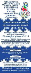 Зачисление проводится по итогам тестирования, которое состоится 21 декабря в 15.15 в водноспортивном комплексе «Солнечный» в Иркутске. Для прохождения тестирования приглашаются дети 2010, 2011, 2012 годов рождения.