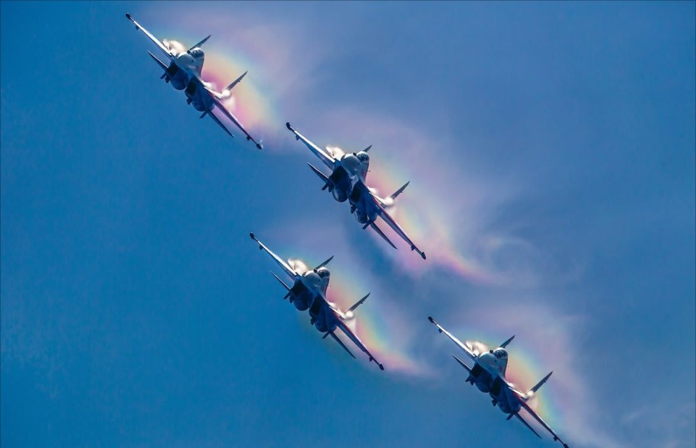 – Пилотажная группа «Русские витязи» на иркутских Су-30СМ произвела фурор на выставке LIMA-2019, где «Витязи» в рамках одного полета синхронно выполнили петлю Нестерова, а также «зеркальное отражение», «трюк падающего листа» и «перекрестную» бочку.