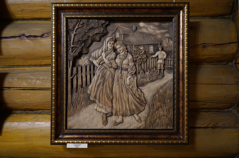 – Один в один, конечно, не копирую, но какие-то мотивы использую. На панно «Подружки» меня вдохновила картина одного итальянского художника, где на фоне арки стояли две девицы, а позади – итальянец. Я поменял пейзаж на деревенский, а персонажей переодел в русские народные костюмы.