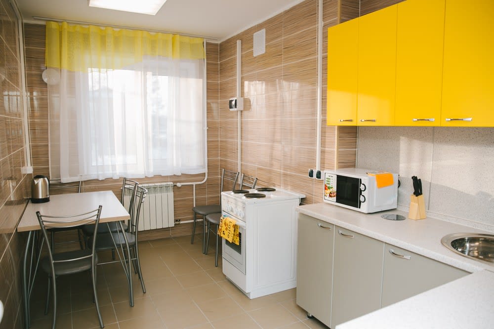Теперь общежитие выделяется среди остальных оранжевыми и зелеными балконами. Да и внутри оно изменилось кардинально – с коридорного на секционный тип. Каждая из 17 секций состоит из четырех жилых комнат на шесть человек, одной кухни и санузла. Здесь есть все самое необходимое, в том числе интернет. На кухне помимо мебели – электроплита, микроволновка, минимальный набор посуды. Санузел оборудован стиральной машиной, современными мойками с сенсорными кранами, в жилых комнатах – кровати, корпусная мебель, холодильник.
