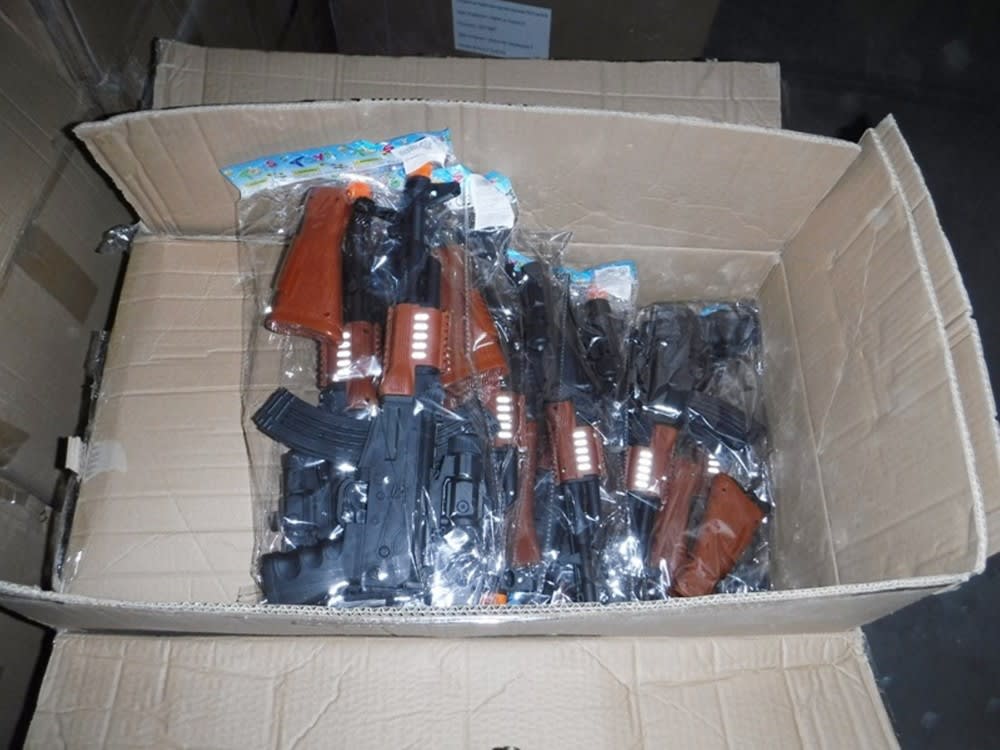 Китайские контрафактные игрушки, имитирующие автомат Калашникова АК 47, выявлены Иркутской таможней. Товар прибыл из Харбина и был размещен на одном из складов временного хранения. Всего в картонных коробках было обнаружено 480 автоматов. Об этом 25 февраля 2020 года сообщили в пресс-службе ведомства.