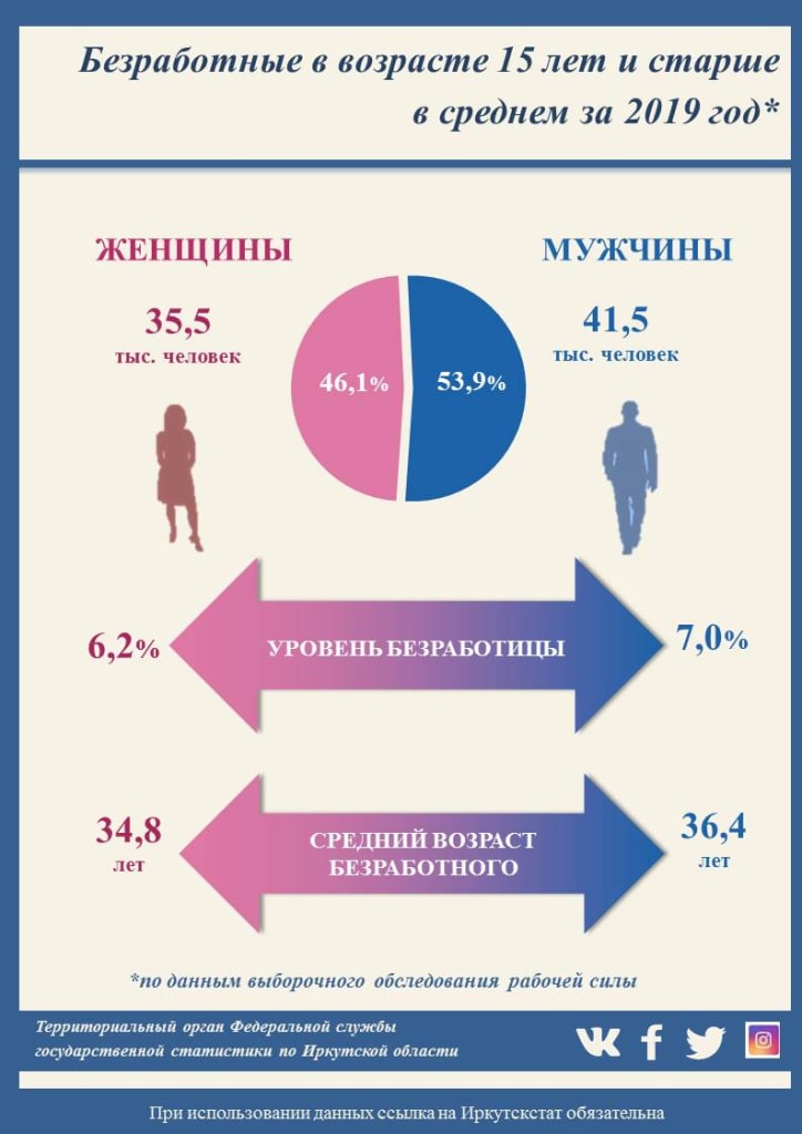 В 2019 году в среднем численность безработных женщин составила 35,5 тыс. (46,1% всех безработных). Уровень общей безработицы женщин ниже, чем у мужчин (6,2% и 7,0% соответственно).
