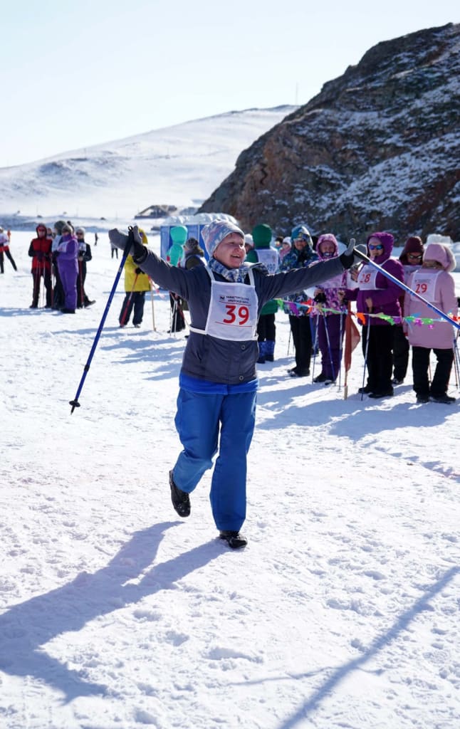 На двухкилометровой дистанции первым финишировал 69-летний Анатолий Шишкин из Тюмени. Скандинавской ходьбой занимается седьмой год, работает инструктором по этому направлению. Рассказал, что привык ходить по грунтовым дорогам, паркам, рощам, и снежная трасса байкальского льда показалась ему сложной: