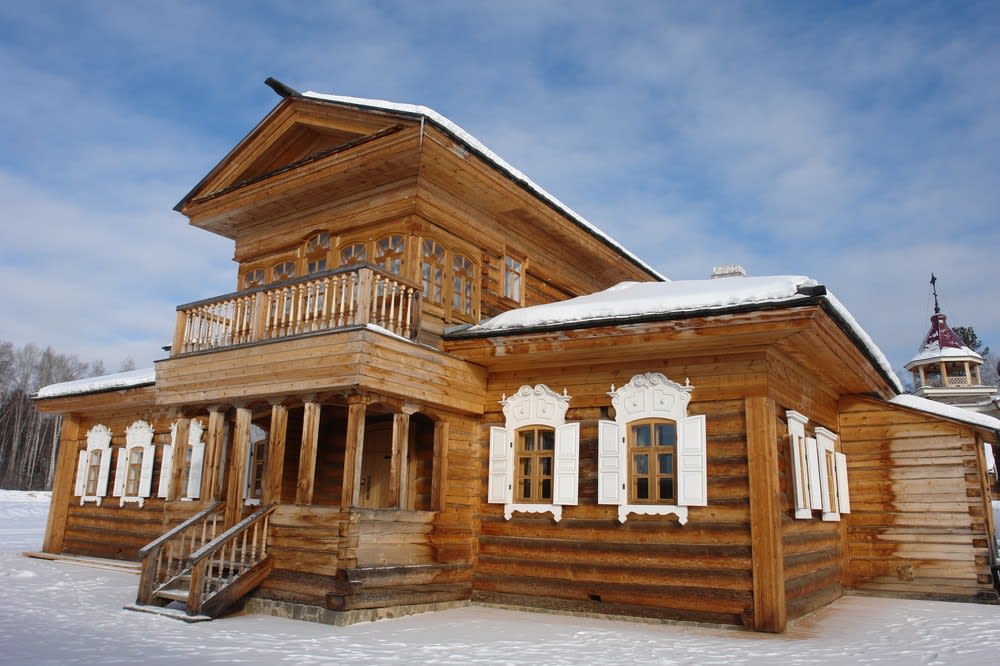 В 2004 году в музей «Тальцы» из поселка Кутулик Аларского района был вывезен один из подобных домов. До революции он принадлежал купцу 3-й гильдии Воинову. Постройка дома относится к последней трети XIX века. Он имеет значительные размеры, сложную объемно-пространственную композицию, полученную в результате двух строительных периодов. Первоначально это был небольшой пятистенок в три окна по главному фасаду, к которому впоследствии был пристроен небольшой объем торговой лавки и развитый дворовый пристрой с мезонином. Дом украшен барочными наличниками и обшит калеванным тесом.