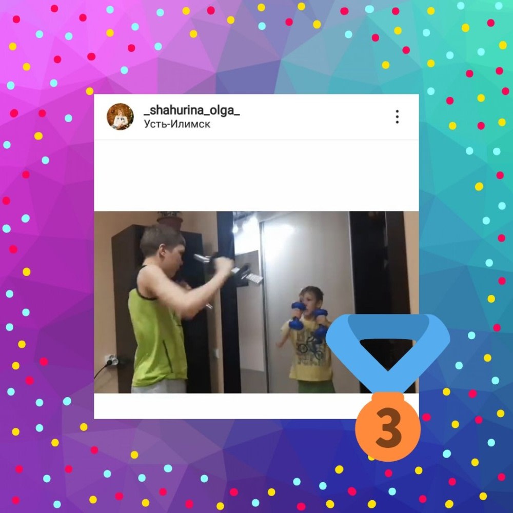 Третье место получил пост, который опубликовала Ольга Шахурина из Усть-Илимска (@_shahurina_olga_). На видео два мальчика под музыку выполняют упражнения с гантелями.