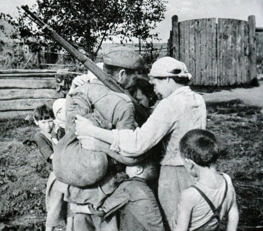 Молодежь погрузили в телеги. Женщины, обезумев от горя, хватались за колеса телег, бежали за ними, даже когда телеги тронулись, падали на землю, в ужасе гребли ее руками.