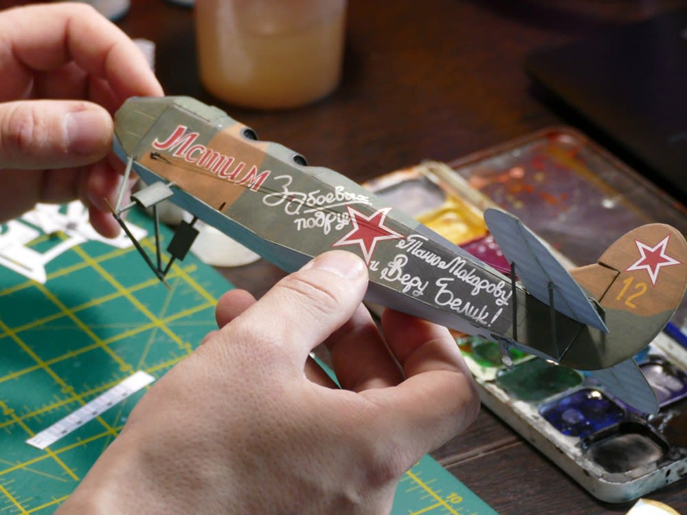 В прошлом году к 9 Мая Алексей сделал модель истребителя Ла-5, на котором сражались знаменитые советские асы Иван Кожедуб, Николай Гулаев и Кирилл Евстигнеев. А нынче решил запечатлеть в картоне По-2.
