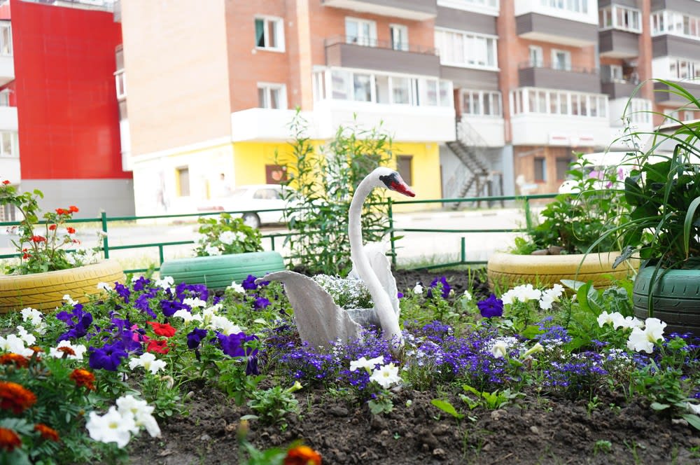 А еще они каждый год озеленяют и облагораживают придомовые территории. Отчасти благодаря конкурсу «Эко-клумба», который организовал ТОС, жители сами начали предлагать креативные решения цветочного оформления. И сегодня яркие композиции во дворах радуют глаз: ромашки, астры, чайные розы, флоксы растут на клумбах, сделанных в виде лебедя, паровозика…