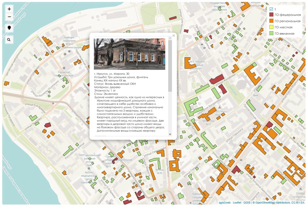 Уже существует пилотная версия карты объектов деревянного зодчества Иркутска, куда включены 100 памятников.