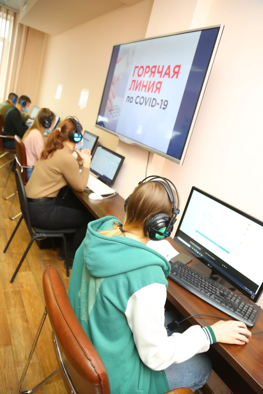 Небольшое помещение под завязку забито операторами. Кроме сотрудников МЧС на звонки отвечают специалисты Роспотребнадзора, минздрава, Фонда социального страхования, а еще волонтеры. Студентка иркутского медуниверситета Карина, несмотря на большую учебную нагрузку, решила свое свободное время проводить в колл-центре. Рассказывает, что инфекция коснулась всех ее близких, поэтому уверена: очень важно вовремя информировать людей, а если надо, подключать к помощи специалистов. Сейчас она несколько минут слушает абонента, а после приглашает к своему столу психолога. Ситуация сложная.