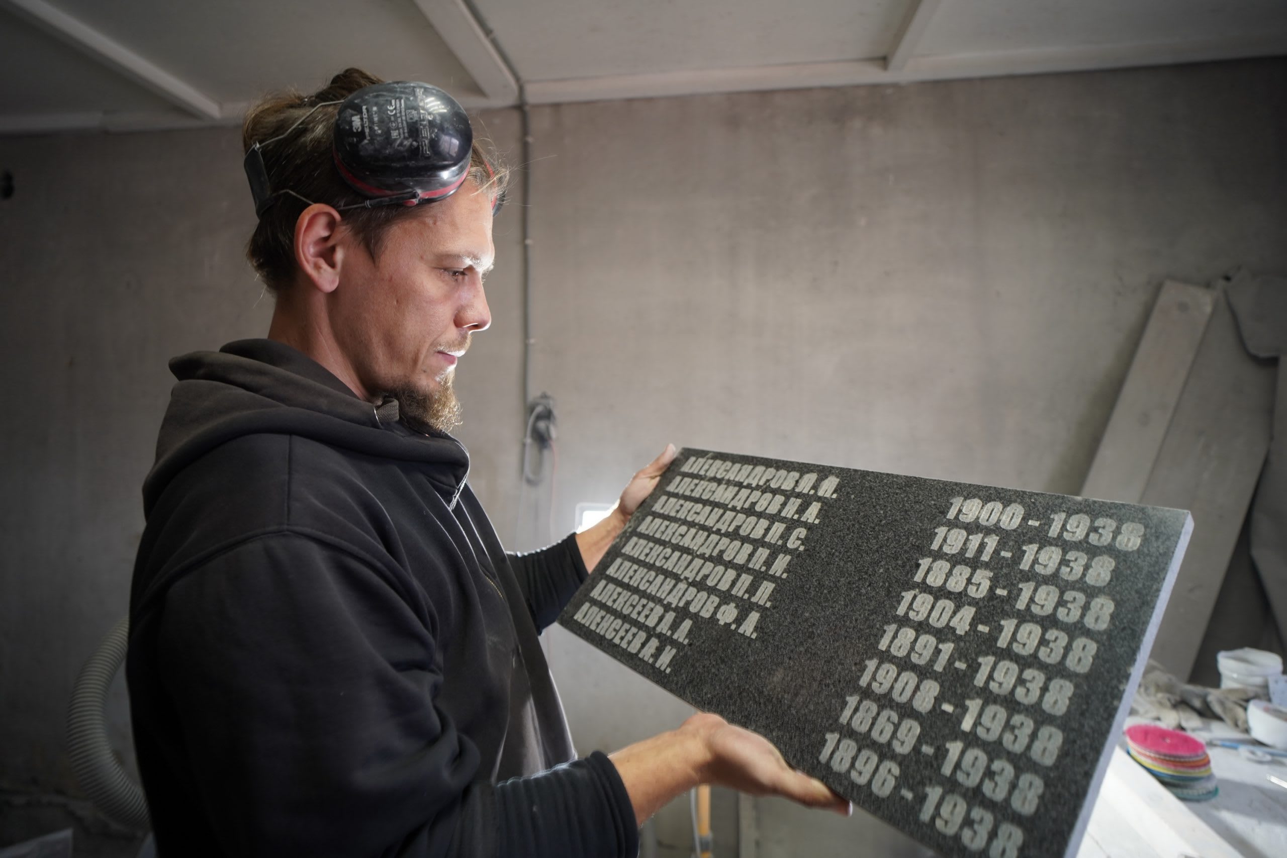– Обработкой камня для мемориала мы занимаемся четвертый месяц. Откалибровали его, отполировали ребра, вырезали детали. Справились с этим довольно быстро. А вот с информацией о жертвах политических репрессий было гораздо сложнее. Получив утвержденные списки, очень долго готовили их к нанесению на камень, и это была не только верстка. Многое пришлось исправлять, редактировать. Находили ошибки с датами рождения, когда человек якобы жил тысячу, 200 и 300 лет. Специалисты делали повторный запрос в архив и там были именно такие даты. Мы постарались исправить все неточности.