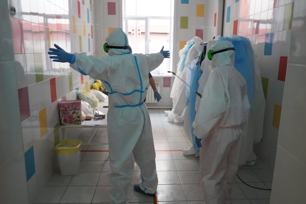 Выдержать целую смену в противочумном костюме – настоящее испытание. В герметичном капюшоне плохо слышно, в полиэтиленовом комбинезоне жарко, в маске – нечем дышать, пластиковые очки постоянно запотевают. Через десять минут я была готова упасть в обморок, но врачи работают так по шесть часов и больше. Говорят, что уже привыкли, и что сейчас в костюме им намного комфортней, чем летом.