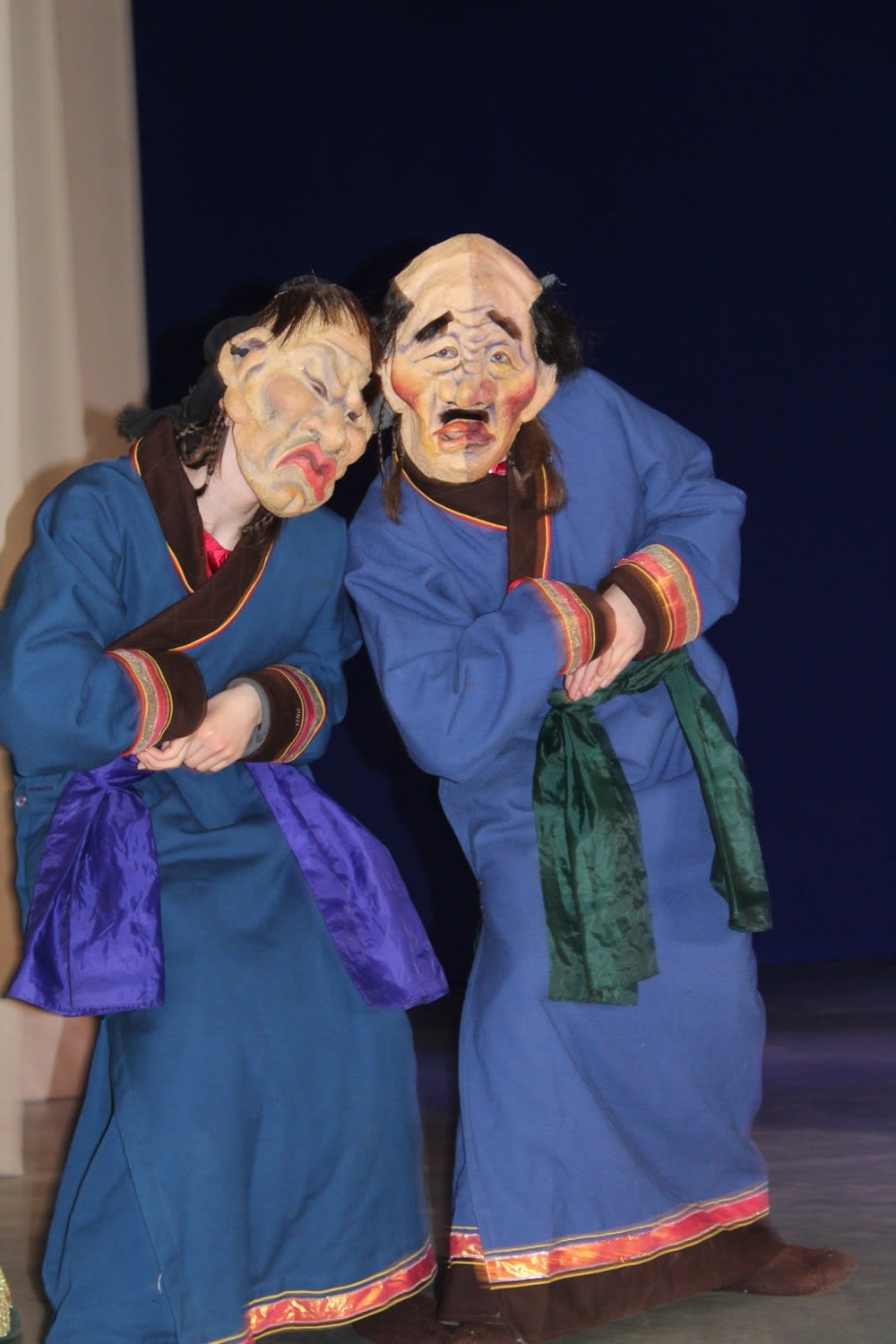 – Инсценировки всех трех спектаклей – авторская интерпретация фольклора моей малой родины, поскольку бурятские сказки в большинстве своем очень страшные. В основе «Бажены» – три истории, но главную героиню я придумала сама. Дело в том, что в моем театре немало ярких юных актрис, и я задумала сделать спектакль, где героиня бы взрослела в процессе истории. Конечно, хотелось выразить в ее лице острый народный ум, ведь в спектакле благодаря Бажене мы свергли богача Найона, который душил народ податями. Нам хотелось восстановить социальную справедливость хотя бы на сцене. Кстати, здесь мы тоже используем маски, а заканчивается все ёхором. Таким образом, я хотела показать цикличность жизни: какие бы ни были условия, народ все равно будет жить, помнить свою историю, корни. В финале идет снег, и звучит тревожная музыка как напоминание о том, что социальная справедливость наступит еще не скоро.