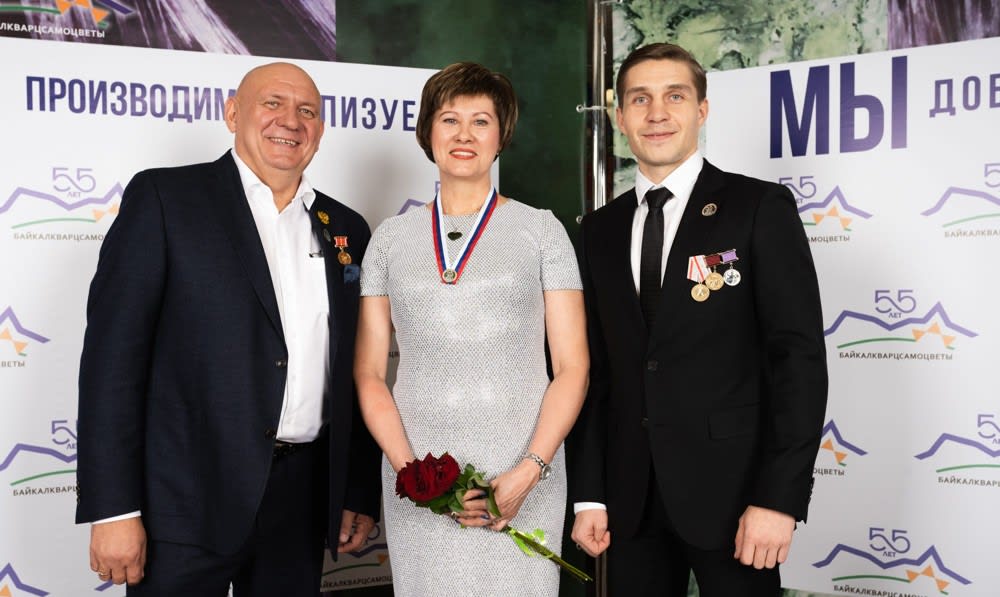 Доказательством заслуг стали многочисленные правительственные награды, которые вручил сотрудникам «Байкалкварцсамоцветов» начальник отдела государственной службы и кадров федерального агентства по недропользованию Михаил Бунеев: «Дорогие коллеги, вы продолжаете славные традиции предприятия. Сохранен и приумножен костяк коллектива. Возрождена уникальная сибирская школа резьбы по камню. Многократно увеличен объем продукции, реализация которой идет во многих городах России и за рубежом, удивляя разнообразием изделий и фантазией мастеров. За успешную работу и высокий результат в реализации социально-экономической стратегии России предприятие неоднократно удостаивалось звания «Лидер российской экономики», отечественных и зарубежных наград».