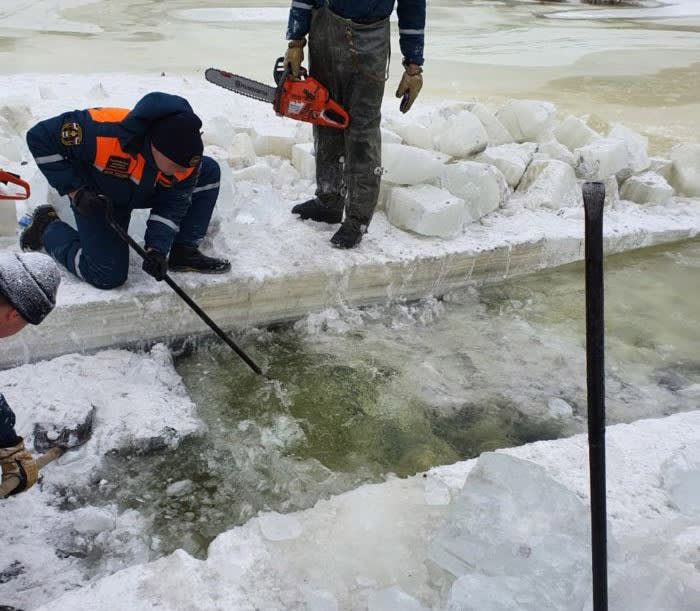 Напомним, 16 января, на протяжении всего дня 14 сотрудников МЧС бензопилами пропилили лёд от берега Байкала вверх по течению Крестовки, расчистив русло протяжённостью 80 метров, до места выхода наледи. Таким образом, было убрано около 50 кубометров льда.