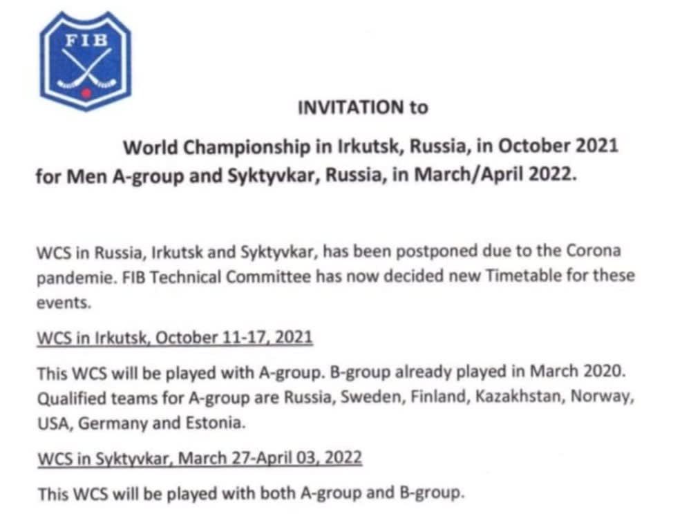 В 2021 году чемпионат мира по хоккею с мячом должен был состояться в Сыктывкаре. Теперь, по решению Международной федерации бенди, турнир в этом городе перенесен на 2022 год.