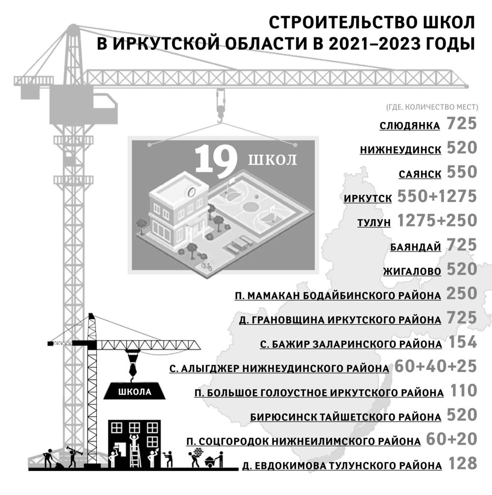 – По нацпроекту нам необходимо построить не менее 60 школ – за три года нужно ввести 19. В этот перечень входит 75-я, – сообщил глава региона. – Я недавно был в Саянске, где школы не строились 30 лет! Сегодня там возводится школа на 550 мест, впервые в рамках нацпроекта строится детсад. В следующем году постараемся начать строительство школы № 7 в Усть-Куте. Образовательные учреждения строятся в Тайшете, Бирюсинске, Нижнеудинском районе. Школы – это инвестиции в будущее.