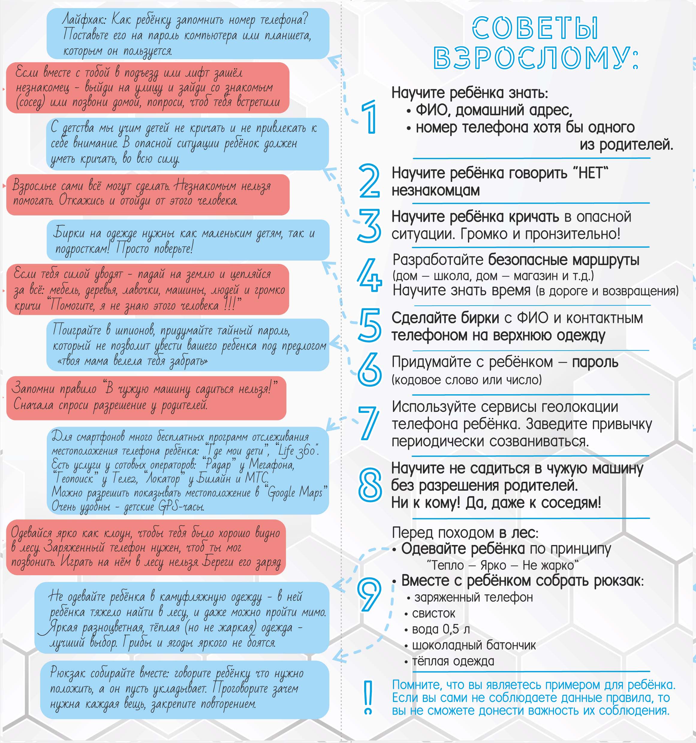 Да, взрослые пытаются разъяснить ребенку правила безопасности. Говорят, что нельзя открывать дверь посторонним, разговаривать с незнакомыми на улице или уходить с ними. Часто это не дает желаемого эффекта, потому что существуют еще такие родительские установки: «Старших надо уважать», «Пожилым нужно помогать», «Веди себя тихо, иначе что о тебе подумают?». При этом надо понимать, что вежливость, не подкрепленная навыками безопасного поведения, ставит ребенка в уязвимое положение.
