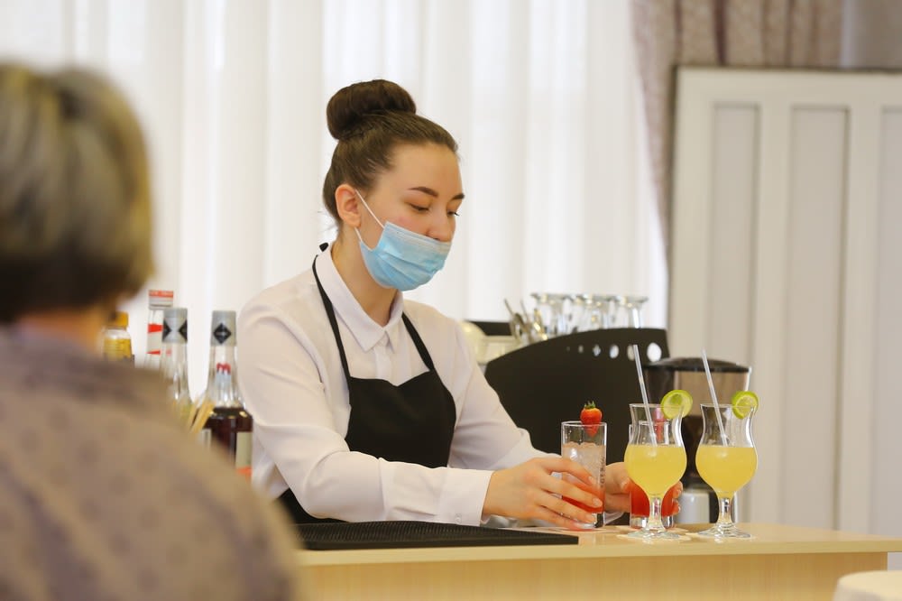 – Ребята участвуют в модуле «Кафе», «Велком сервис» и «Бар». Задача барменов – помнить все рецепты, поровну распределить порции. Накрывая стол «коробка», важно соблюдать пропорции скатертей, а салфетки нужно свернуть 15 способами, – поясняет инженер по технике безопасности Вера Лыжина.