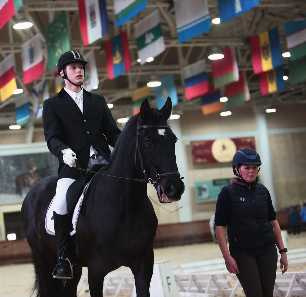 Егор Аршинский уже несколько лет тренируется в отделении конного спорта областной спортивной школы олимпийского резерва «Тамир» имени И.И. Тыхреновой, работающего на базе конного центра Фонда Тихомировых под руководством главного тренера Фонда, мастера спорта России Анастасии Тихомировой.