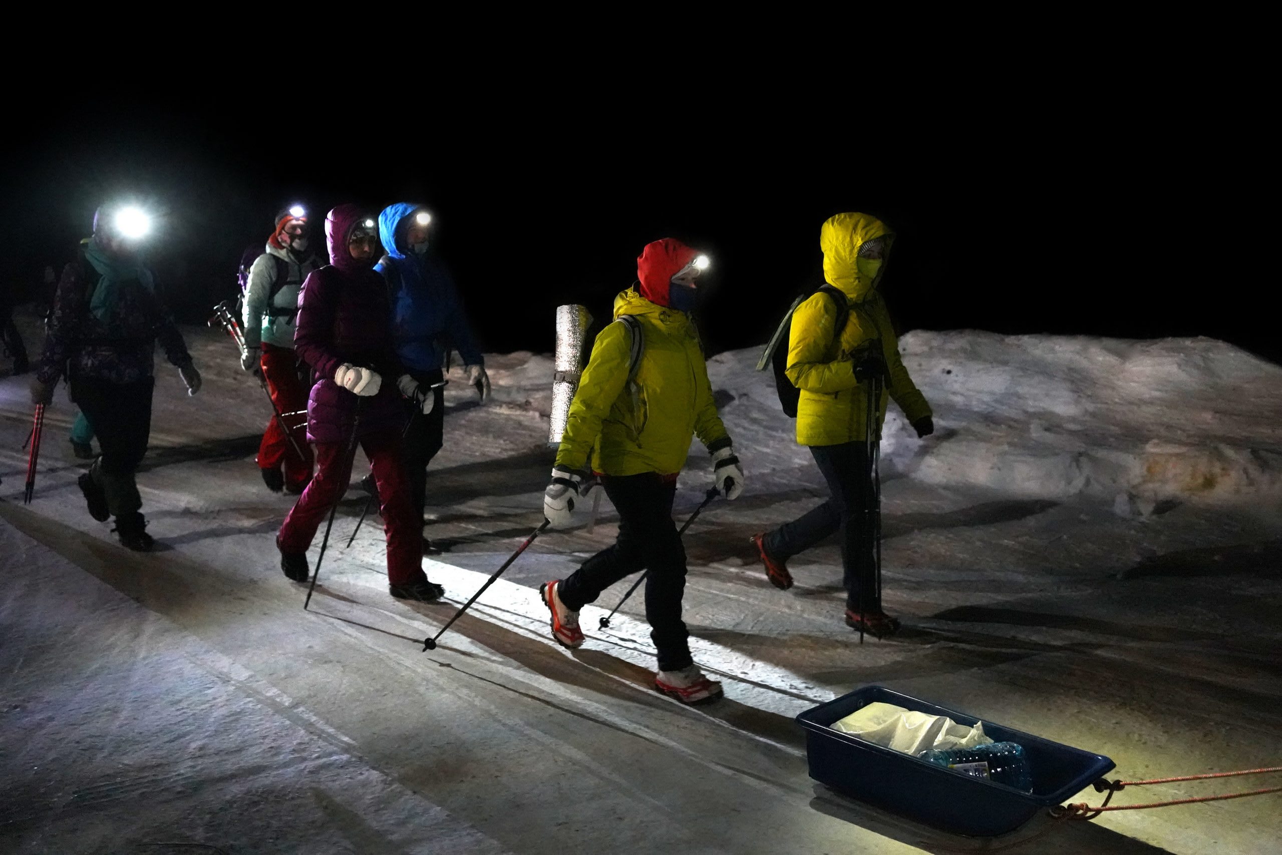 Александр Иванов принимал участие в организации перехода. По его словам, из экипировки у всех участников были альпинистские «кошки», чтобы не скользить по льду, запас еды и воды для перекусов. Впереди основной группы шел небольшой отряд разведки.