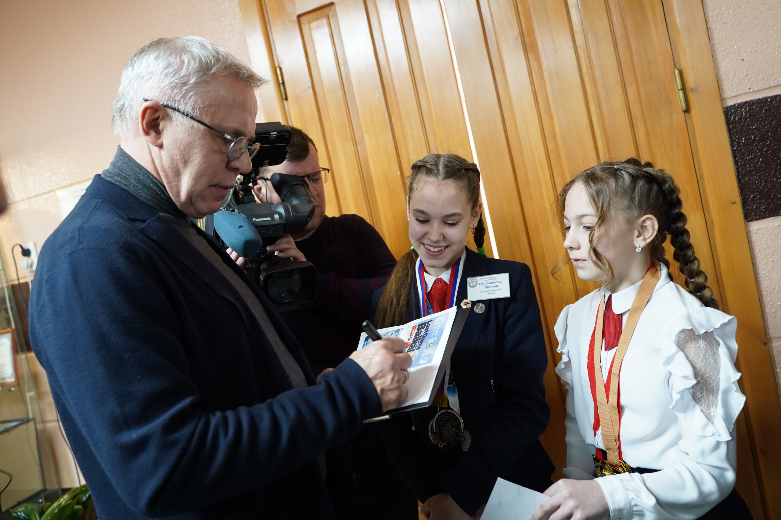 Гимназисты подготовили для гостей творческий концерт, вручили легендам хоккея эко-подарки: блокноты с авторскими рисунками, сделанные из вторичного сырья. Хвастали обилием спортивных кубков и медалей, заработанных на состязаниях по разным видам спорта: хоккей с шайбой, легкая атлетика, стрельба из лука, художественная гимнастика, спортивная акробатика, фигурное катание. Советские звезды с удовольствием фотографировались с детьми, оставляли автографы на их клюшках, спортивной форме…